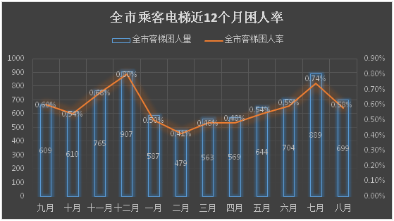 注:全市客梯困人率=每月客梯困人次数÷当月全市在用客梯总数×100%