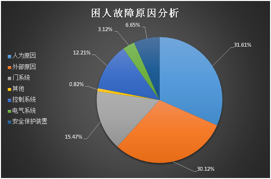 图3按发生困人乘客电梯的故障原因统计饼图