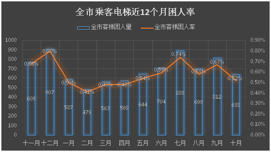 注:全市客梯困人率=每月客梯困人次数÷当月全市在用客梯总数×100%