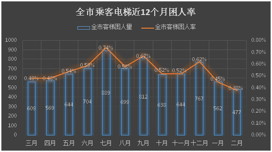 注:全市客梯困人率=每月客梯困人次数÷当月全市在用客梯总数×100%