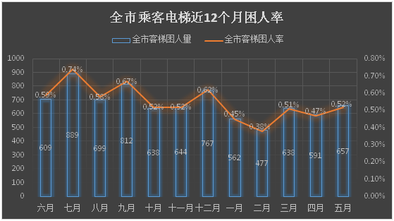 注:全市客梯困人率=每月客梯困人次数÷当月全市在用客梯总数×100%