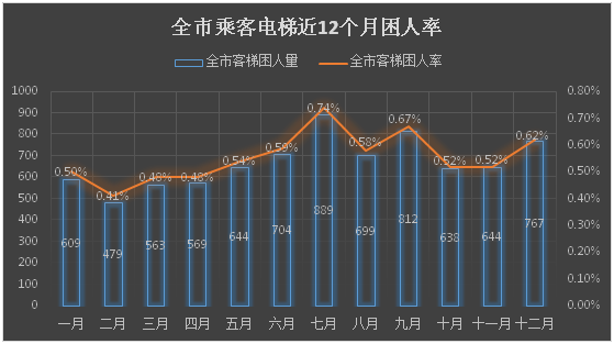 注:全市客梯困人率=每月客梯困人次数÷当月全市在用客梯总数×100%